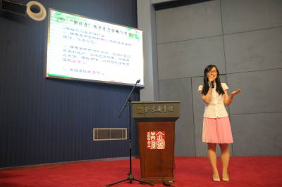 不少志愿者在朗读录音过程中遇到了各种困难和疑问,且即将开始的暑期少儿公益活动“青苹果朗读者”、“纪念国际盲人节”公益演出也给他们带来更大的挑战。因此,他们此次都是带着问题前来,而几位老师也较为注重与听众的互动交流,在讲解了基本知识和方法后,更多地时间留给志愿者提问,其中有一组朗读志愿者上台演示了一出精心排演的讲述节目《民国奇女子蒋碧微的爱情故事》,王传海老师对他们的努力和爱心表达了敬意,并对他们每个人做了客观而到位的点评。