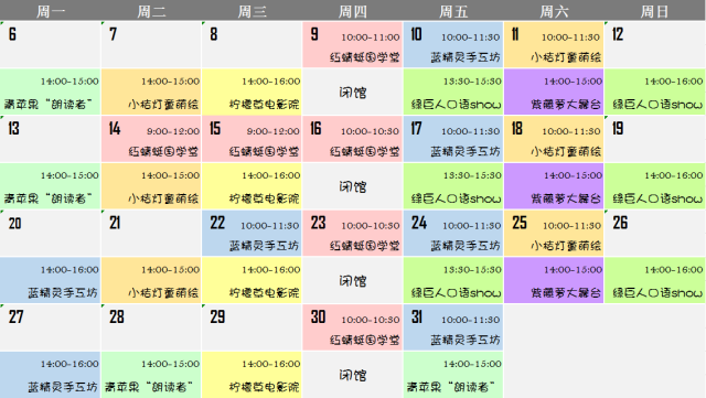 “七彩夏日”活动日历