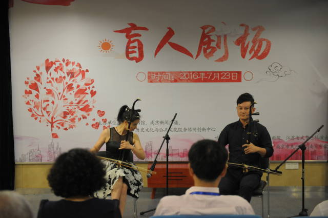在局相关领导部门的支持下,在广大文化志愿者的努力下,第二期“盲人剧场”演出更专业,互动更深入,受众更广泛。此次参与节目的表演者,有来自江苏省武警总队政治部演出队、江苏省昆剧院、南京市演艺集团的专业表演艺术家,也有来自南京新闻广播的知名节目主持人。他们均作为金陵图书馆“朗读者”公益性志愿活动的优秀文化志愿者,不计报酬,公益献演,为的就是一份在公共文化服务平台上尽己所能、服务社会的热情与信仰。婀娜旖旎的昆曲《牡丹亭》节选、深情励志的朗诵《我喜欢出发》,还有令全场沸腾的二胡合奏《新赛马》……在第二期活动的舞台上,文化志愿者们通过乐器演奏、美文朗诵、歌曲对唱、戏曲演绎等多种艺术形式,为在座的视障读者带去了一场听觉盛宴。
