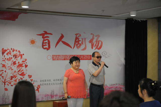在“盲人剧场”活动中,金陵图书馆馆长董群、金陵图书馆书记焦翔还向南京市盲人协会主席杨丽娟赠送了《阅读金陵》和《诗意金陵》两套“朗读者”第四季出版的有声作品集,内容均以深受盲人读者欢迎的南京地方特色文学为主。“朗读者”公益性志愿活动现已发展至第五季,近8000人的志愿者队伍为了向视障群体提供更优质的文化服务,不断在打磨自己的朗诵技巧和表演能力。就在“盲人剧场”举办的同时,第五季新加入的志愿者们也来到金图报告厅,正在接受专业的朗诵、表演和录制技巧培训。2016年,金图希望以“朗读者”为平台,通过“盲人剧场”专业、多元的服务模式,既为弱势群体读者营造优质的阅读环境和高雅的艺术氛围,也为其提供展示自我和交流互动的舞台,帮助他们打造丰富、精致的书香生活。