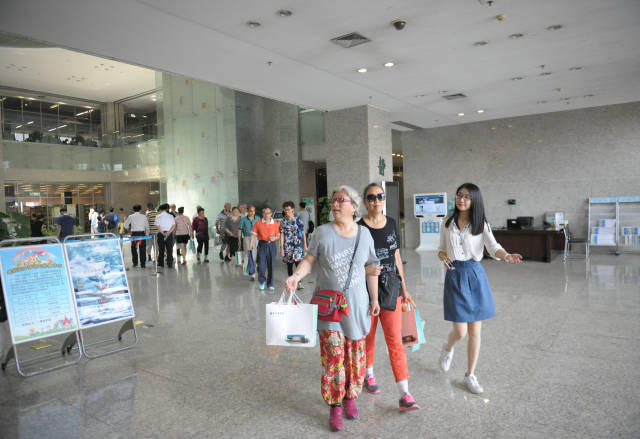 在“盲人剧场”结束后,盲人读者们手牵着手,一同移步金陵图书馆一楼的盲人阅览室,在工作人员的指导下触摸盲文书籍,并使用助视器上网浏览。