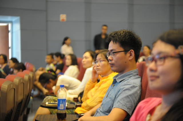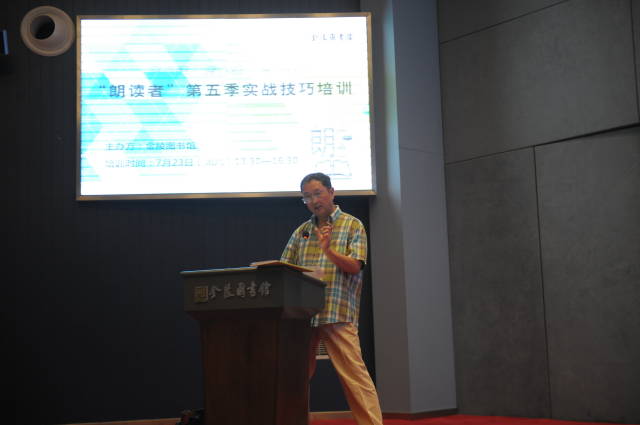 “用耳朵倾听世界,用心灵享受阅读。”7月23日,2016 “朗读者”第五季公益活动专题报告会在金图报告厅举办,特邀南京市演艺集团国家一级演员王传海讲授“舞台表演指导”,2012级“朗读者”优秀志愿者代表、网络工程师花浩分享“家庭录音实务技巧”,金陵图书馆“朗读者”项目策划张婕则带领大家一同“认识‘朗读者’”。报告会吸引了成年、少儿朗读志愿者共600多人前来聆听学习。
