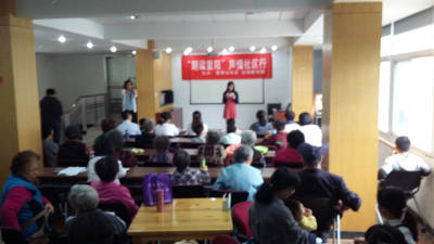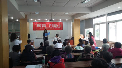 “朗读者”活动是一项由金陵图书馆联合南京新闻广播联合打造的以视障、老人、儿童等收听需求群体为主要服务对象的社会公益活动。本次“朗读者”声情社区行活动从幕后录制有声读物发展到台前开展公益活动,从线上来到线下,向居民们宣传“朗读者”公益项目的优秀成果,让更多市民了解到文化助盲的公益理念。同时又正值重阳佳节,金陵图书馆的工作人员们为社区的老人们准备了精彩纷呈的文艺节目。手风琴演奏《彩云追月》、诗朗诵《感恩父母》、相声《国庆趣事》等数十个节目令人目不暇接,舞台上精彩的表演让社区居民纷纷拍手叫好。