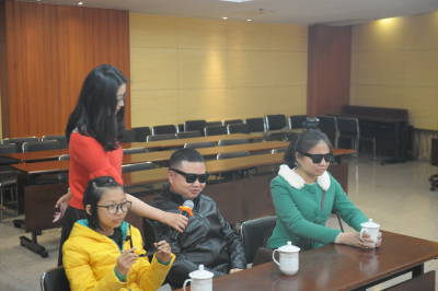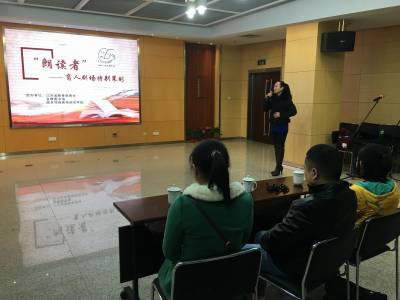 4月5日下午,在金陵图书馆的多功能厅里举办了一场特殊的“朗读者”盲人剧场,这是由金陵图书馆联合江苏电视台优漫卡通卫视、南京特殊教育师范学院共同为来自扬州的14岁女孩丁子涵一家量身定制的盲人剧场专场服务,十余位来自社会各界的朗读志愿者们奉献了自己清明节的假期时间,特地前来送上无障碍讲电影、越剧、朗诵、演唱等节目,圆女孩一场孝心梦。