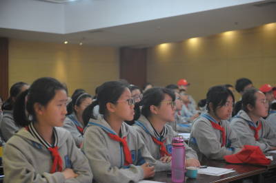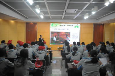 5月9日下午,2018“朗读者”第七季团队“朗读者”宁海中学分校2017级初一6班读书会在金陵图书馆首次开启校园行。全班46位同学全员到齐,首先在李孝滢、朱丽丽两位老师带领下参观了图书馆以及在展的3项展览,随后在多功能厅由张婕老师为他们做了首次读书会宣讲《认识“朗读者”》,并以现场朗读展示的6位同学为例给予了点评和指导。