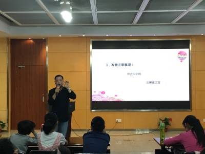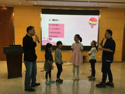 本次课程的讲师江枫老师是南京新闻广播FM1069《时事热评》节目主持人,一级播音员,多次参加大型活动的朗诵及指导。他的声音大气又不失亲和力,一开场就将孩子们的注意力都聚焦到他身上,他主要讲解了发音注意事项、重音训练、绕口令练习、诗歌朗诵和笑话演讲技巧等内容,给孩子们分享了许多自己的经验和秘诀,发音练习用南京人所熟悉的发音弱项“n”和“l”举例,笑话演讲则教大家配上肢体动作、声音语调的变化来讲述,讲解过程幽默风趣,课堂氛围轻松而愉快,充分调动起孩子们参与的积极性,并加以点拨和指导,希望孩子们都能有所收获和提高。