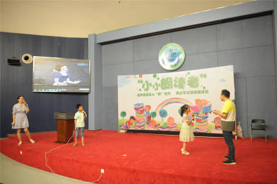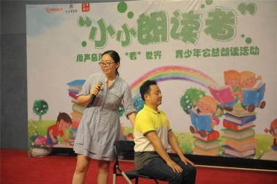 活动伊始,唐莹和王鹏老师先为小小朗读者们进行了暖场和预热,邀请了几位小朋友上台做自我介绍和才艺展示,有的讲故事,有的讲笑话。有一位男生借此机会向爸爸妈妈说了几句心里话,“我是一个有‘窍’的孩子,希望妈妈不要把我爱画画的‘窍’盖上。”他用轻松幽默的方式,在这个舞台上倾诉了平日里不敢表达的内心想法。