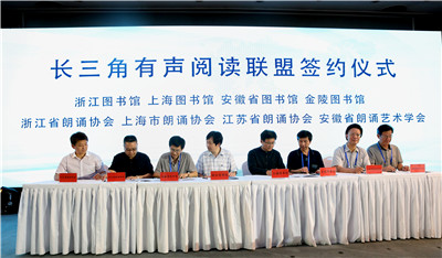 论坛的重要环节之一是举行长三角地区有声阅读联盟启动仪式,金陵图书馆馆长董群联合浙江图书馆馆长褚树青、上海图书馆副馆长何毅、安徽省图书馆副馆长许俊松、上海市朗诵协会会长陆澄、浙江省朗诵协会刘忠虎、安徽省朗诵协会艺术学会魏民、江苏省朗诵协会副会长傅国共同签署有声阅读联盟协议书。该联盟将联动长三角地区各公共图书馆及专业朗诵协会的力量,致力于打造有声阅读空间,结合数字图书馆的传播渠道,开展丰富多彩的有声阅读推广活动,让更多读者感受到有声阅读的魅力。