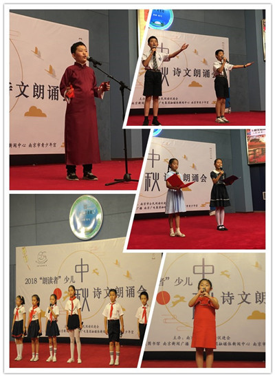 与以往不同是,今年的表演者们是一群朝气蓬勃的少儿朗读者,他们带来了古诗吟诵、现代诗朗诵、散文朗诵、儿童快板、亲子故事等形式多彩的语言类节目。其中,《水调歌头》节目是由南京新闻广播主持人唐莹编排指导, 6位小小朗读者以唱诵结合的形式将一首好听的《天之大》和苏轼的《水调歌头》完美契合,唱诵出别样的思乡滋味;《南京的秋》由2位女生首次搭档,沉稳大方、婉转流畅地朗诵让每个人都感受到了南京的秋意和古城的灿烂;《古诗连诵》是由2位男生搭档,将三首与明月有关的诗歌朗诵得颇具阳刚之气;儿童快板《说大话》中小演员一身蓝袍甫登场便有传统曲艺之风,惟妙惟肖的演说伴随着欢快的快板节奏让人捧腹大笑,欢乐无穷;亲子故事《月亮的味道》绘声绘色,充满童真与童趣。此外,《我的思念是圆的》、《我们朗诵》等朗诵都表现得同样精彩。本次活动的主持人是来自南京新闻广播的主播戴立,他最后也献上了一篇朗诵——季羡林老先生的散文《月是故乡明》,饱含深情的语句感染了场下所有的人,在阵阵掌声中结束了本次朗诵会。