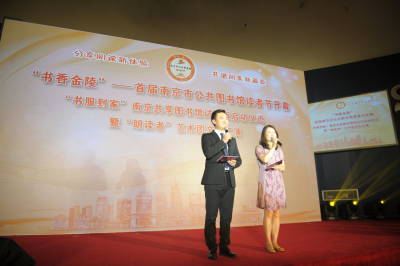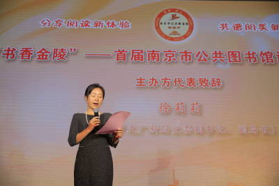金陵金秋,南京市公共图书馆读者们首次迎来属于自己的节日。10月13日下午,由南京市文化广电新闻出版局主办、金陵图书馆及市各区图书馆承办的“书香金陵”首届南京市公共图书馆读者节开幕——“书服到家”南京共享图书馆试运营启动仪式暨“朗读者”艺术团文艺汇演在金陵图书馆举行。主、承办及共建合作单位相关领导出席了本次活动,南京市文广新局党委副书记、副局长徐莉莉和南京新闻综合广播总监束忱分别为活动致辞。