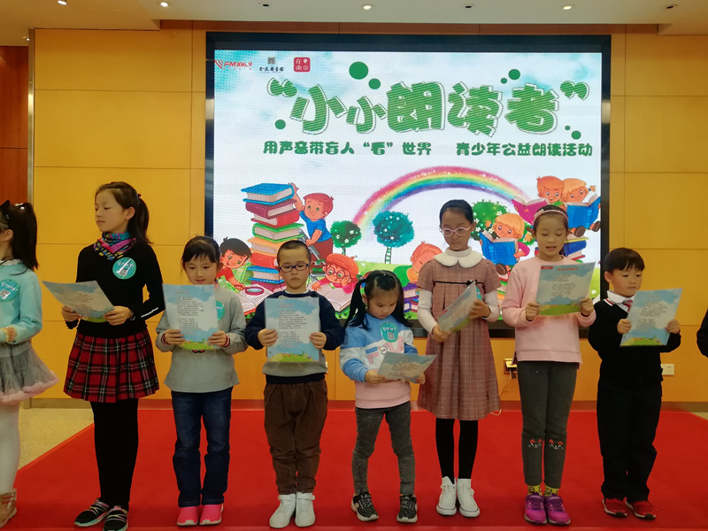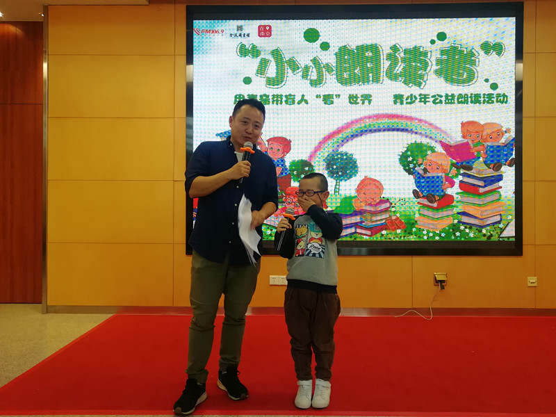 11月18日下午,由南京新闻广播、金陵图书馆联合举办的“用声音带盲人‘看’世界”——“小小朗读者”第五期PK赛在金陵图书馆多功能厅举行。比赛由南京新闻广播主播王鹏主持,由金陵图书馆“朗读者”项目负责人之一汪然、南京新闻广播主播文清、小雅共同担任评委。