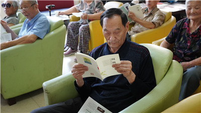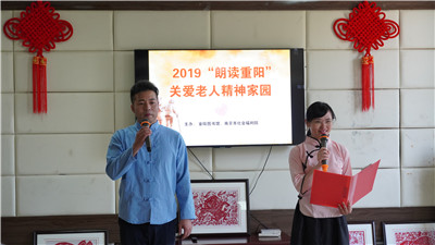 金陵图书馆作为南京市级公共图书馆,和南京市社会福利院的同心共建由来已久。自2012年起,金图在社会福利院的服务流通点正式揭牌以来,每年累计调配文学经典、趣谈养生等书刊近千余册;2013年起又推出了“朗读重阳”关爱老人精神家园品牌活动,每逢重阳节,“朗读者”艺术团的党员志愿者们更是携着浓浓的节日问候屡屡为老人们奉上名篇朗诵、戏曲表演、方言小品等视听文化盛宴,受到老年朋友的欢迎和喜爱。