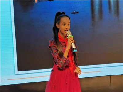 30位小选手依次登台,深情朗诵,展现了对30个作品的理解。本次的主题是“勇敢发声,让每颗爱心都长大!”,孩子们挑选了歌颂祖国的红色主题及童话主题的篇章,小选手们依次登台,声情并茂地朗诵着一首首诗篇,《祖国在我心中》、《建邺之光》、《森林王国》 、《巨人的花园》……时而轻声追述,时而含蓄委婉,时而慷慨激昂,他们的朗诵打动和感染了现场的每一个人。其中还有一位是“小小朗读者”活动第一次出现的外国小选手。