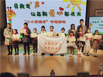 经过紧张而紧凑的竞赛和现场计分,最终十一位同学获得优秀奖,十位获得“小小朗读者”称号,接下来他们将走进南京新闻广播录制间,在专业主持人的指导下为视障人士录制有声读物,让他们可以用耳朵认识世界,拥抱世界。