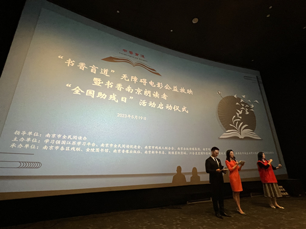 为了全面贯彻落实党的二十大报告“深化全民阅读活动”的指示精神,通过开展全域合作,将“全民阅读”与“文化助残”深度融合,在第三十三个“全国助残日”到来之际,金陵图书馆作为承办方之一,参加了由南京市全民阅读办指导,学习强国江苏学习平台、南京市全民阅读促进会、南京市残疾人联合会、南京出版传媒集团、南京电影协会主办,南京市各区残联、南京音像出版社、南京新华书店、鼓楼星轶影城、六合星星国际影城、江宁星悦巨幕影城、秦淮区幸福蓝海梦幻影城、UME影城鼓楼店、江宁区幸福蓝海曼巴影城等承办的“书香盲道”无障碍电影公益放映暨书香南京朗读者“全国助残日”活动启动仪式。