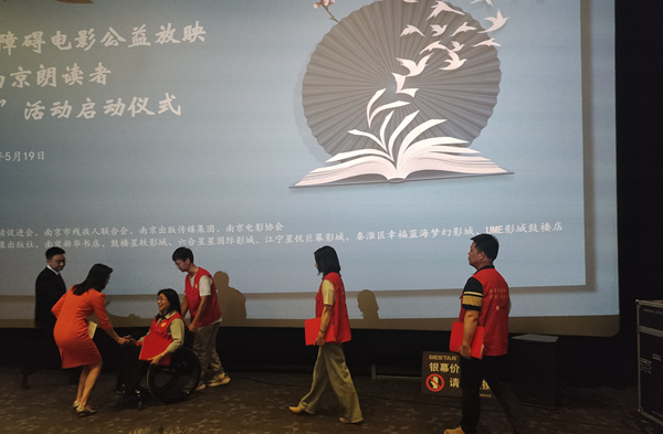 启动仪式上,金陵图书馆副馆长杨峥莅临现场。金陵图书馆“阅美”志愿者郝青、张舒进行了无障碍电影《周恩来的四个昼夜》的导读,河海大学的青年学生们在现场搀扶、引导残障人士,承担了授牌礼仪及阅读推广志愿服务。