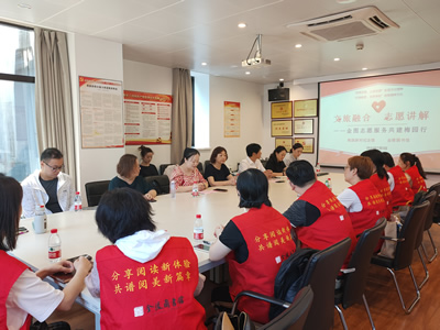 2023年7月5日上午,金陵图书馆副馆长杨峥,活动服务部主任周樱格,活动服务部馆员以及金图首届志愿讲解员一行,来到梅园新村纪念馆。长期以来,梅园新村纪念馆在志愿者工作方面硕果累累,经过十余年的发展,曾获市文明办“学雷锋志愿者站”优秀奖。“永远的怀念”南京市公共文化设施优秀志愿服务项目。如今,在文旅融合高质量发展的时代背景下,金陵图书馆与梅园新村纪念馆携手合作共同举办“文旅融合 志愿讲解——金图志愿服务共建梅园行”。用“阅美至善,公益志愿”彰显文化精神,用“红梅暗香,志愿奉献”凝聚精神文化,共同谱写文旅融合、志愿奉献的新篇章。梅园新村纪念馆副馆长孙烈涛,副馆长盛军,公共服务部副主任康望舒出席共建活动。
