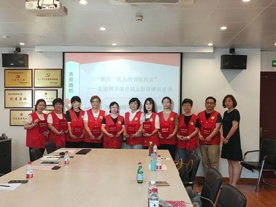 随后,金陵图书馆副馆长杨峥为志愿者王永红、王京、江南、沈亚娟、陈晓峰、周袁、胡志红、钟思莹、唐文婷、谢玉芬,颁发“我为图书馆代言”——金陵图书馆首届志愿讲解员证书。自此,图书馆志愿讲解员将正式进入南京这座“志愿之城”的大家庭中,以崭新的服务形式,为公共图书馆带来志愿行动新业态,满怀梦想、扬帆起航!