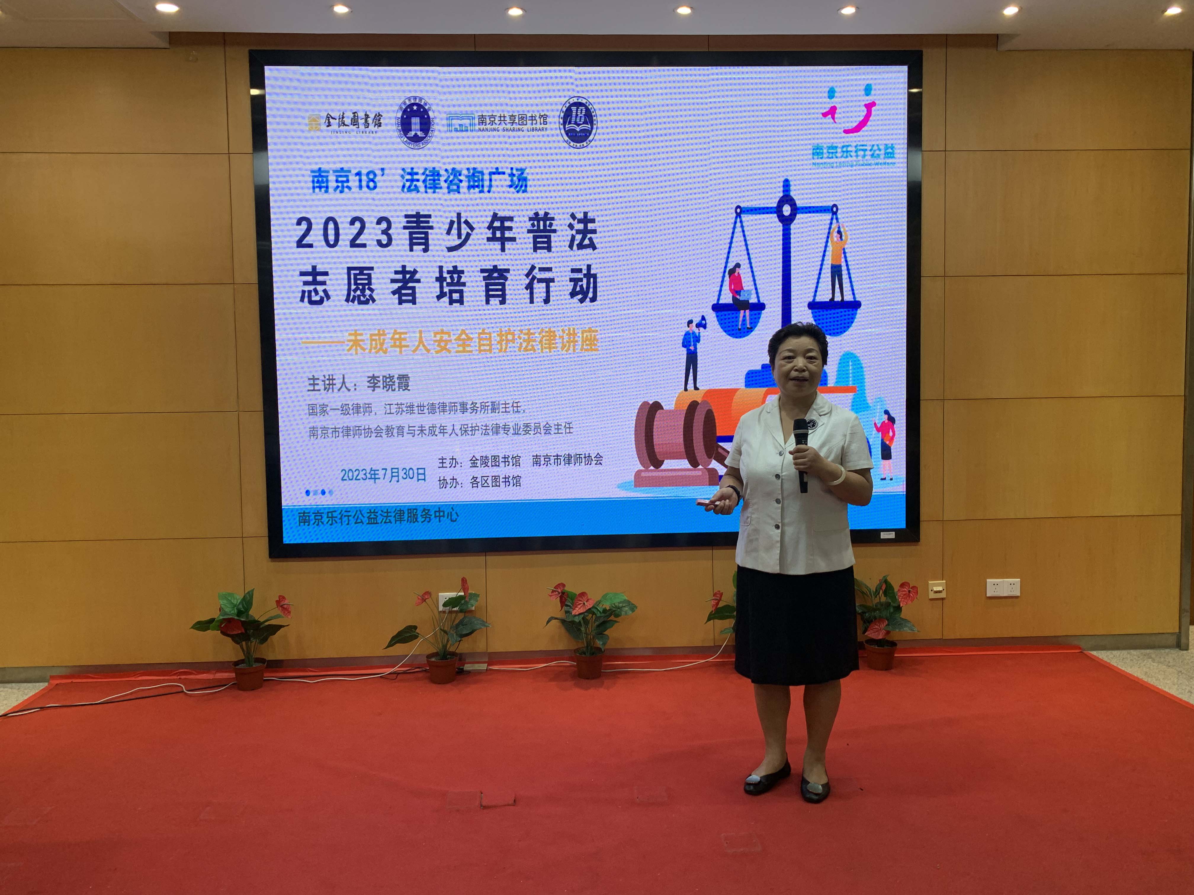 为创造有利于未成年人健康成长的环境,加强未成年人安全自护的法律意识,着力在法律保障、素质教育、心理健康等方面给未成年人带来关爱和帮助,2023年7月30日14:00,金陵图书馆邀请国家一级律师,江苏维世德律师事务所副主任,南京市律师协会教育与未成年人保护法律专业委员会主任李晓霞主讲《未成年人安全自护法律讲座》。