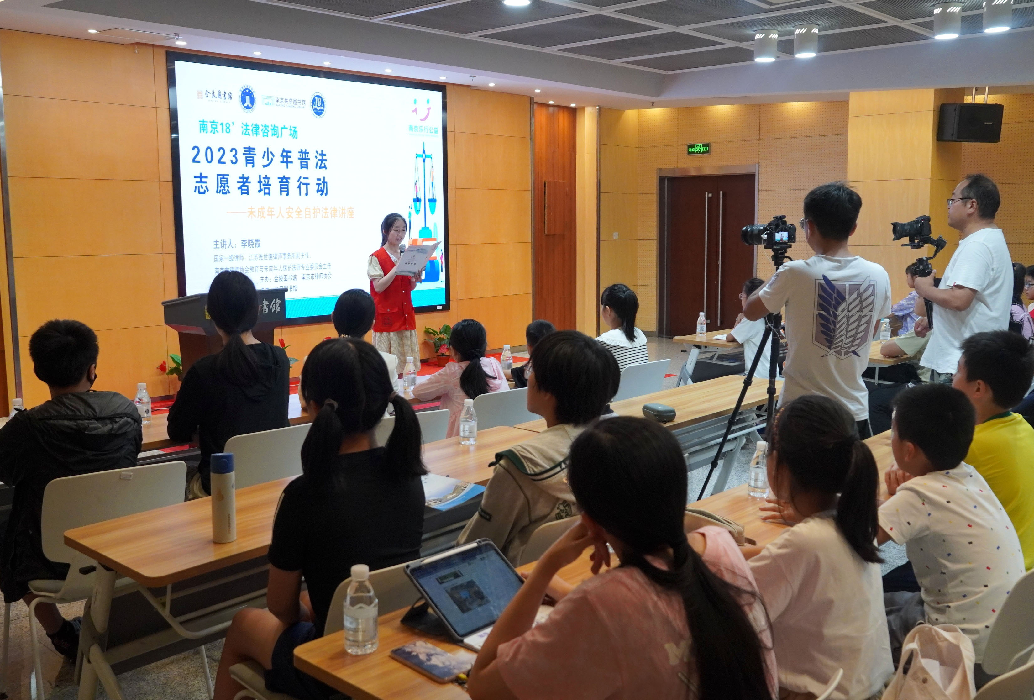为深入学习宣传贯彻党的二十大精神,努力使尊法、守法、学法、用法在全社会蔚然成风,认真落实全国“八五”普法规划关于“加强青少年法治教育”的部署,不断深化青少年法治宣传教育,持续提升青少年法治素养,引领青少年做社会主义法治的忠实崇尚者、自觉遵守者、坚定捍卫者,由金陵图书馆、南京市律师协会主办,各区图书馆协办的南京18’法律咨询广场·2023青少年普法志愿者培育行动自4月启动以来,受到全市青少年读者们的广泛关注。