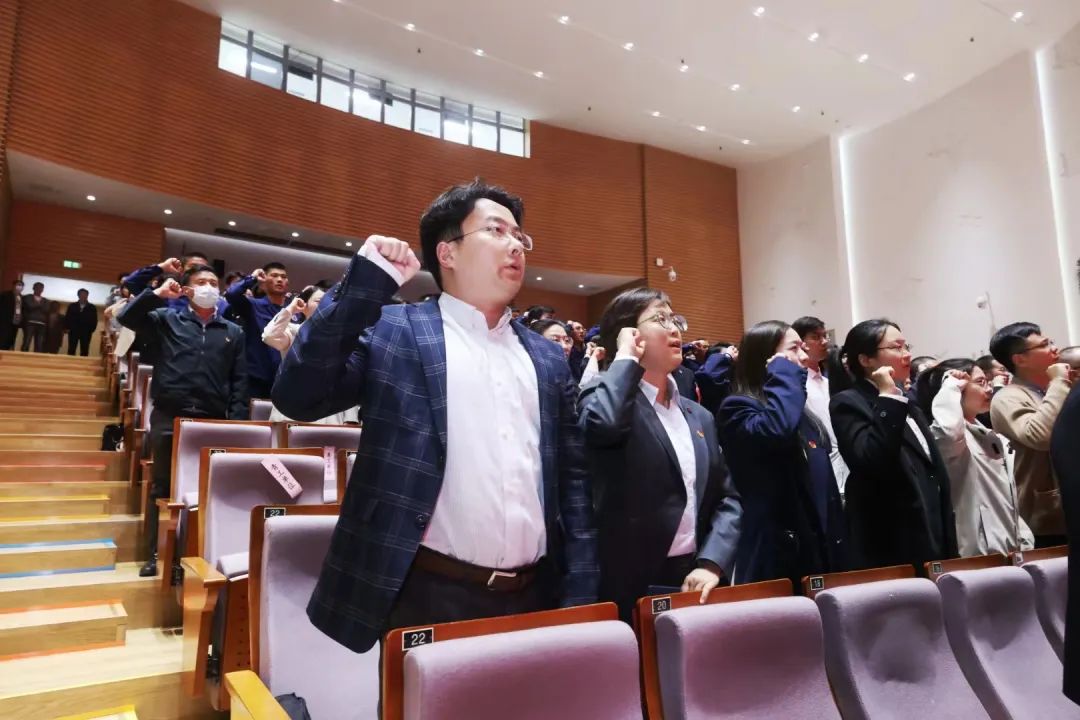 最后,在南京师范大学附属中学树人学校团委书记何妍的带领下,新团员代表面向团旗进行了庄重的入团宣誓。青年们则集体重温入团誓词,誓言铿锵,青春的信心与活力在此刻得到见证。