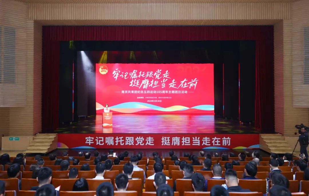 2024年4月30日下午,由南京团市委、市青联主办的“牢记嘱托跟党走,挺膺担当走在前”南京市纪念五四运动105周年主题团日活动暨“南京青年建功高质量发展”青春分享动员会在市青少年宫青春剧场举行。市纪委监委派驻市总工会纪检监察组领导、部分市青年工作联席会议成员单位领导、团市委书记室成员以及各板块、直属单位团组织负责人、市级青年讲师团成员、部分优秀青年代表等约400人参加了此次活动。