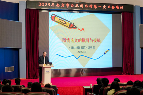 最后,《新世纪图书馆》编辑部刘明主任以《图情论文的撰写与投稿》为主题,面向图书馆员们进行论文撰写指导。他首先介绍选题的内涵原则与方法,从国内图书情报学选题分析、与图书馆员工作相关的选题、来稿中选题存在的问题、选题及投稿的几点建议给大家做了详细的诠释,最后通过数篇论文案例深入浅出地介绍了文章写作规律和审美要求,并分享了图情期刊投稿技巧。2023年南京市公共图书馆第一次业务培训也在全体观众的掌声中圆满落下帷幕。
