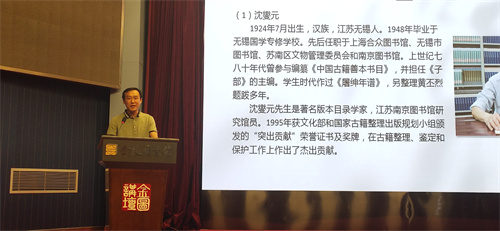 首先,南京图书馆信息资源开发部副主任李玮就国家图书馆中国记忆项目:“中国图书馆界重要人物专题”情况展开授课。他概括了本项目的基本宗旨、合作机制、申报与评定等环节,并着重介绍了资源采访环节中口述史访谈的细节,还对南京图书馆“中国图书馆界重要人物专题”对沈燮元先生、卢子博先生的采访过程、后期编辑进行了详细描述。在授课最后,李主任播放了口述史访谈的成片,加深了图书馆员们对中国记忆项目的了解。