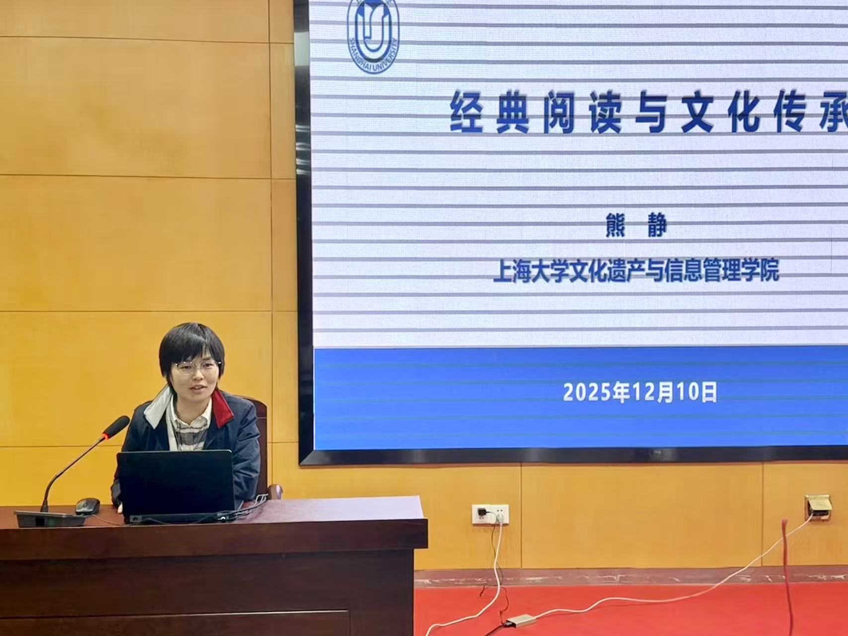 培训班紧密围绕“十五五”时期公共图书馆面临的机遇与挑战,邀请业内知名专家进行专题授课。上海大学文化遗产与信息管理学院熊静教授在《图书馆经典阅读与文化传承》讲座中,从文明赓续的视角,深刻阐释了经典的永恒价值与当代图书馆的核心使命。她系统梳理了“经典”的文化内涵与历史脉络,并直面数字化时代经典阅读面临的“危机”,提出图书馆在经典传承中应扮演关键角色。熊静教授还详细介绍了通过编制分级分众的经典推荐书目、打造沉浸式经典阅览空间、设计场景化与研学结合的推广活动,以及培养专业阅读推广人等多元路径,让古老经典在当代社会焕发新生。