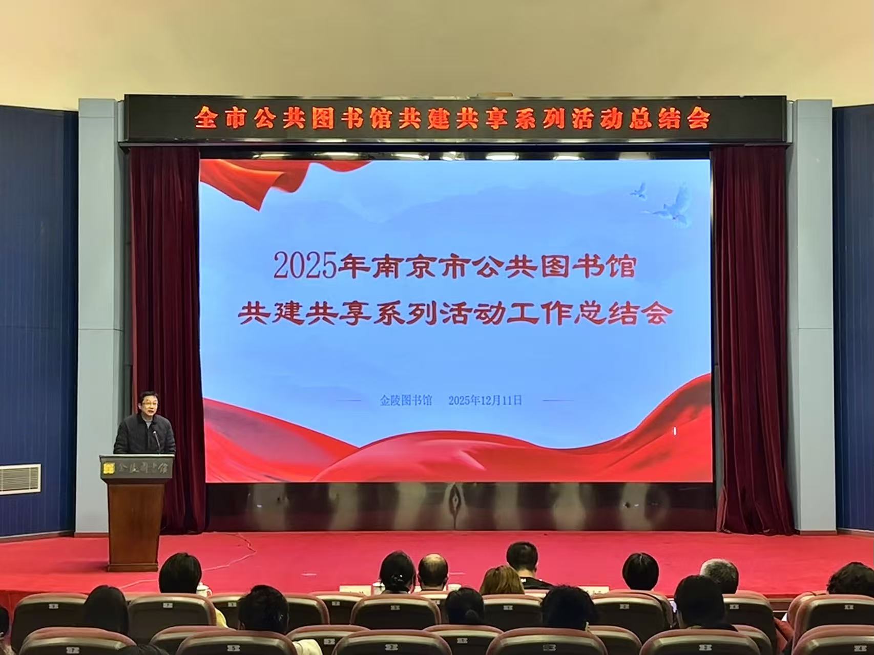 为全面审视2025年南京市公共图书馆共建共享系列活动的实施成效,深入总结宝贵工作经验,明确未来发展方向与目标,促进全市公共图书馆事业的持续繁荣发展,12月11日下午,2025年南京公共图书馆共建共享系列活动总结会在金陵图书馆报告厅举行。金陵图书馆馆长尹士亮、副馆长方炜、李海燕,市文旅局公共服务处主任张洪雷,以及来自南京市14家区级公共图书馆的馆领导,市区两级公共图书馆馆员代表共同出席了本次总结会。会议由金陵图书馆副馆长方炜主持。