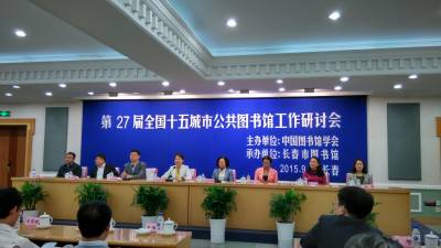 2015年9月10日,由中国图书馆学会主办、长春市图书馆承办的第27届全国十五城市公共图书馆工作研讨会在长春举行。出席研讨会开幕式的领导和专家有文化部公共文化司巡视员刘小琴、长春市人民政府副市长张晶莹、长春市人民政府副秘书长卢福建、长春市文广新局局长崔永泉、副局长曲笑、十五城市公共图书馆馆长等。我馆书记焦翔、辅导部副主任王承冠代表金陵图书馆出席本次研讨会。
