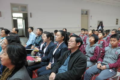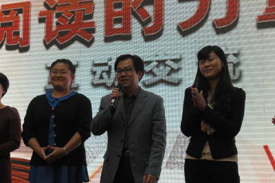 在启动仪式上,金陵图书馆向学校捐赠了近三百份“朗读者”有声读物光碟。焦翔书记发言中,介绍了金陵图书馆“朗读者”活动的概况。作为公共文化服务单位,金图很早就着力于保障包括盲人在内的残障人士提供平等享有文化服务的权利,一方面金图早在2005年新馆筹建时就将对视障人士的阅读指导服务列入建设计划,采购盲文书籍,开辟借阅区域,建设了设施条件良好的视障人士阅览室,提供盲文出版物阅览、有声读物欣赏和无障碍上网等多种专属服务,并于2011年10月首次在“手佳”盲人按摩保健中心开设分馆;另一方面,从2012年起金图联合南京新闻广播持续三年开展面向视障人士阅读服务的“朗读者”公益项目,招募到包括教师、律师、医生等南京党政机关、学校、企事业单位及其他各行各业的个人、团队,人数达4000名,得到多位高校专家学者的学术指导,多位著名作家的作品授权,至今推出三部有声光盘。10月12日举办的朗读者公益演出,让志愿者们从幕后走到台前,走到盲校孩子的身边,为盲校学生和社会志愿者提供了一个同台联欢的舞台,真正实现彼此的互动和交流。