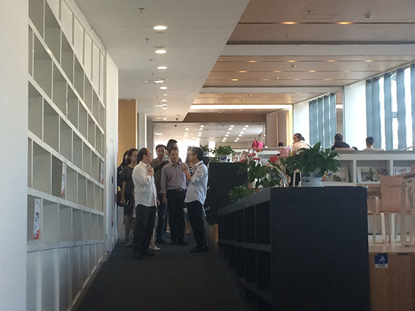 鼓楼区图书馆高俊馆长、徐力副馆长热情接待了金图的到访者,随后带领大家参观了鼓楼馆内部,颇具特色的坡道结构令人印象深刻。参观结束后,双方坐定,促膝而谈,就日常工作中的一些具体问题进行了讨论。在交流的过程中,高馆长不但详细介绍了鼓楼馆的相关情况,而且提出了若干具体问题。尹士亮副馆长首先代表金图对鼓楼区图书馆的欢迎表示感谢,并表示将持续推进金陵图书馆对区馆的服务工作。李海燕主任介绍了金图事业研究部的基本工作,并就图书馆日常业务、员工的业务培训等方面与鼓楼区图书馆领导交换了意见。纪景超主任则对鼓楼馆古籍的开发与保护以及资源建设等工作提出了建设性的观点。