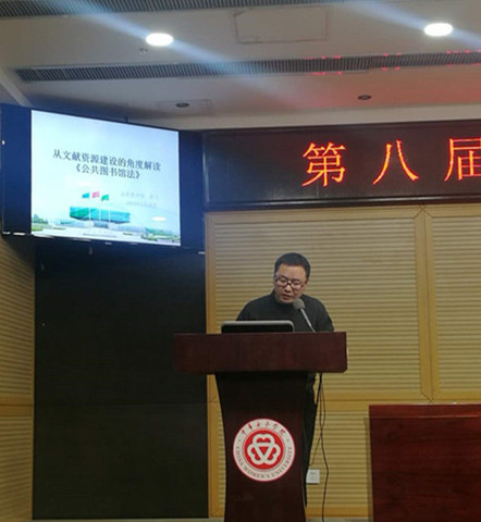 本届论坛以“图书馆资源建设绩效评估及特色资源建设”为主题,分领导致辞和学术交流两部分进行。在学术交流部分,我馆采访编目部副主任彭飞以文献资源建设角度,从文献资源建设的重要性、文献资源建设的经费来源、文献信息的收集、文献信息的整理加工、文献信息的保存与处置、数字资源建设、古籍资源建设、文献资源共建共享和出版物交存制度九个方面对《公共图书馆法》进行了详细解读。在此次论坛学术交流之余,我馆继去年之后再次荣获由社会科学文献出版社颁发的“2018年度馆藏及阅读推广优秀图书馆”称号。