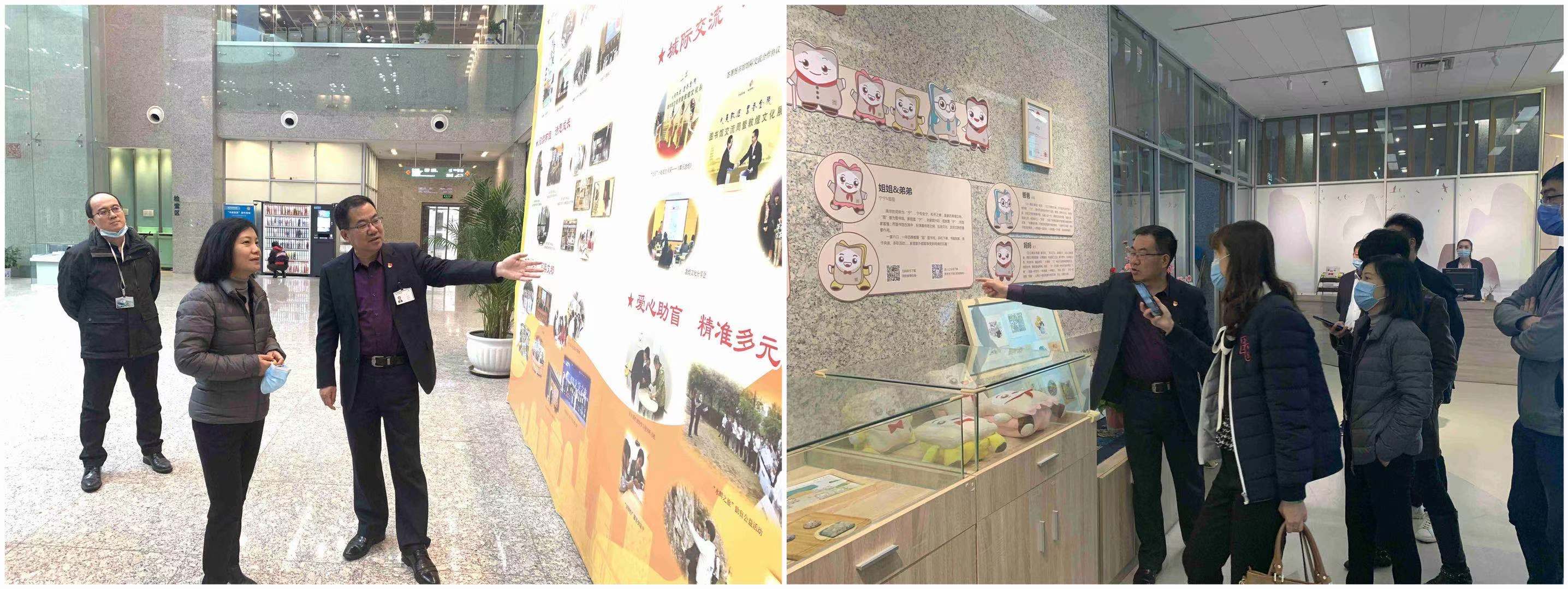 在参观结束后的调研座谈会上,我馆事业研究部李海燕主任首先整体汇报了金图“十四五”规划编制框架及进展情况,随后,尹士亮副馆长围绕金图市区联动工作、特色服务及体系建设等几方面,对“十三五”到“十四五”期间金图针对重难点问题的做法与规划进行了详细的阐述。