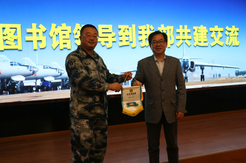 2019年是新中国成立70周年,也是人民空军成立70周年。为加强军地交往,促进双拥共建工作,4月2日,金陵图书馆党总支书记焦翔应邀带领总支委员及支部书记等一行十余人,前往空军某部队进行参观交流并签署共建协议。