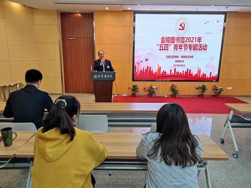 为庆祝中国共产党成立100周年,继承和发扬五四精神,引导广大青年自觉树立和践行社会主义核心价值观,5月6日下午,“继承五四精神,展现青春风采”主题青年节活动在金陵图书馆成功开展。本次活动由金陵图书馆党总支青年委员、办公室主任张磊主持,20余名青年图书馆员参与活动。