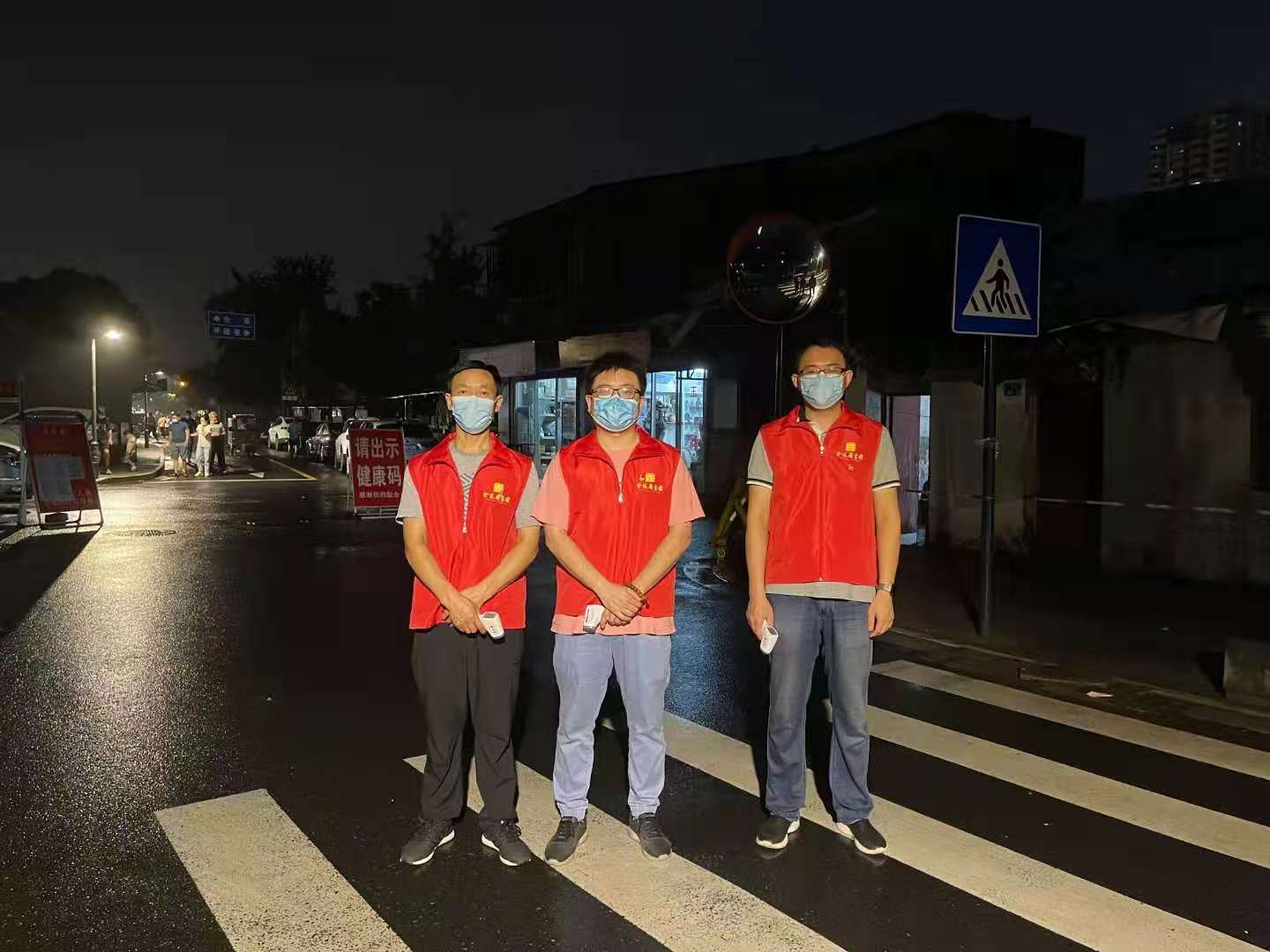 根据上级党委的安排,金图党员志愿服务队的第一站是秦淮区朝天宫街道的七家湾社区交通卡口。8月15-21日金图三支部全体18名党员参加了的志愿服务队,从早上8点到晚上10点,对进出交通卡口的人员有序进行体温检测和健康码查验工作。8月23日开始,第二站金图党员志愿者们来到了乐山路社区,早晨9点到11点,下午3点到5点两个时间段,协助金马郦城物业对进出小区的人员有序进行体温检测和健康码查验工作,不管是烈日炎炎还是狂风暴雨,党员志愿者们始终坚守岗位。切实维护防控秩序、积极开展防疫宣传。金图“红马甲”是一直是活跃在路口最动人的色彩。