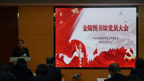 2022年2月17日下午,金陵图书馆党总支党员大会在一楼多功能厅召开,会议由党总支副书记焦翔同志主持,全体党员同志参会。