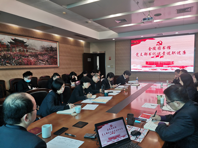 2022年1月21日,金陵图书馆党支部书记述职述责述廉暨总支“一旗双星”测评会议在四楼会议室召开,会议由党总支书记尹士亮主持,总支委员及各支部委员、部分党员群众代表参会。