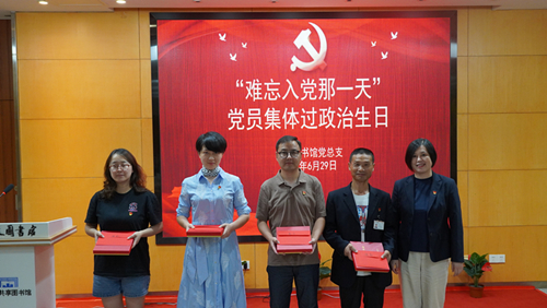 活动的第二项是党员集体过政治生日,总支委员方炜同志宣读贺信、潘洁同志向部分党员代表颁发政治生日贺卡,新老党员代表朱丽丽、缪勤同志分别上台分享心得体会,谈入党初心、讲多年历程;随后,总支书记尹士亮同志带领全体党员面向党旗肃立,集体重温入党誓词。