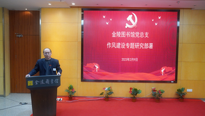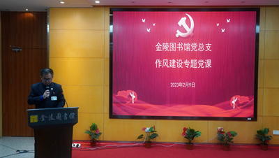 回首过往,立足当下,放眼长远,金陵图书馆党总支党员大会于2023年2月9日上午在一楼多功能厅召开。本次会议由党总支副书记焦翔同志主持,全馆在职党员参会。