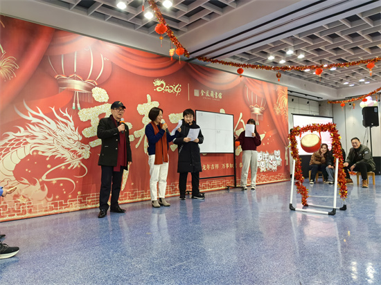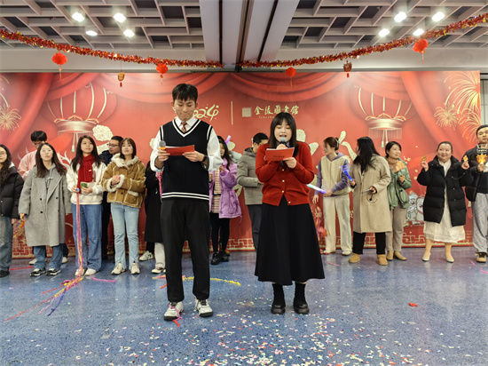 玉兔欢跳辞旧岁,龙行龘龘迎新春。2月1日,金陵图书馆一楼展览厅张灯结彩、喜气洋洋,2024年金陵图书馆新春联欢会正在这里举行。