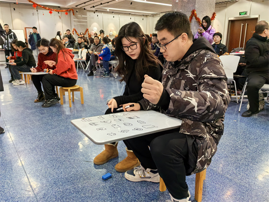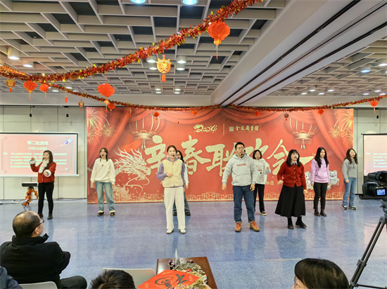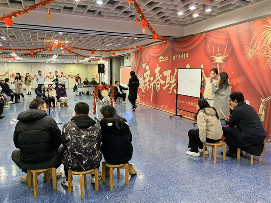 为了增加联欢会的趣味与互动性,演出中还设置了多个游戏环节,如猜诗词、猜电影名、考察本馆业务知识或馆情馆貌的竞答题等等,这些游戏既考验了各部门参与者的默契,又让大家在游戏中增添了喜悦、收获了欢乐。