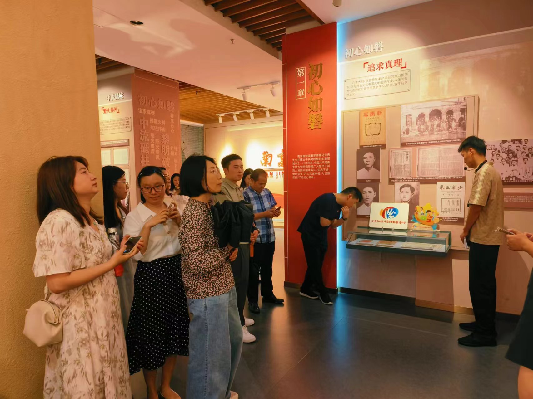 南京红色档案展以中国共产党在南京的发展历程为主线,分为“初心如磐”“中流砥柱”“黎明破晓”“激情岁月”“圆梦小康”五个篇章。通过历史图片、档案资料、文字视频等方式,全景式展示了中国共产党在南京从无到有、从弱到强、从浴血奋战到高质量发展的波澜壮阔的历史画卷。在讲解员对一件件档案实物和一幅幅珍贵老照片的介绍下,党员们被革命先烈们坚定的革命信仰和忠诚干净担当的价值追求深深打动着。