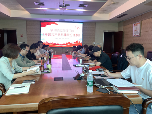 接着,支部集中观看了先进典型纪录片《榜样8专题节目·李桂科“治病治心治贫,让村民更幸福”》和反面警示教育片《刘川生利用“一把手”职权违规让儿子滥用“北师大招牌”办幼儿园》,随后支部党员开展了党纪学习教育交流讨论。潘洁同志表示每次学习《条例》都有新的收获,党员要时刻把党纪摆在前面,融入到平时的日常工作、生活当中,完成图书馆的工作。李海燕同志表示对自己分管的部门要严管理、正风气,做到制度面前人人平等,练就过硬的作风。周军表示作为一名图书馆员,要深刻认识到党纪与图书馆业务之间的紧密联系,党的纪律就是图书馆工作的指导原则之一。肖剑锋、朱晓雯、彭飞、陈凤娟、俞荣荣、孙泉、蔡毅等同志也在会上进行了交流。