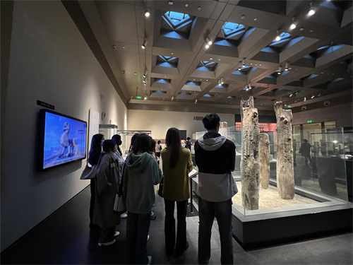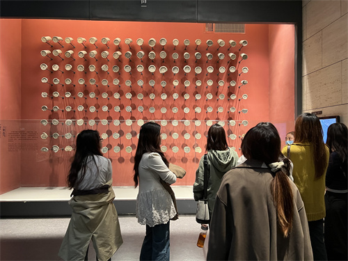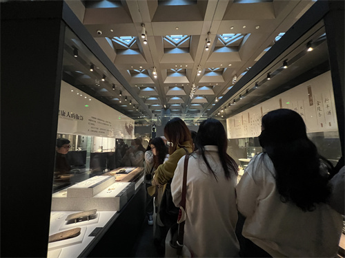 在庄重典雅的展厅内,团员们依次参观了“六朝帝都”“六朝风采”“六朝人杰”等主题展区。1700年前的宫城建筑遗迹、国宝青瓷莲花尊、东吴“首席文臣”张昭金印……通过“六朝青”志愿讲解员的详细介绍,团员们深切感受到历史的厚重与文明的延续。