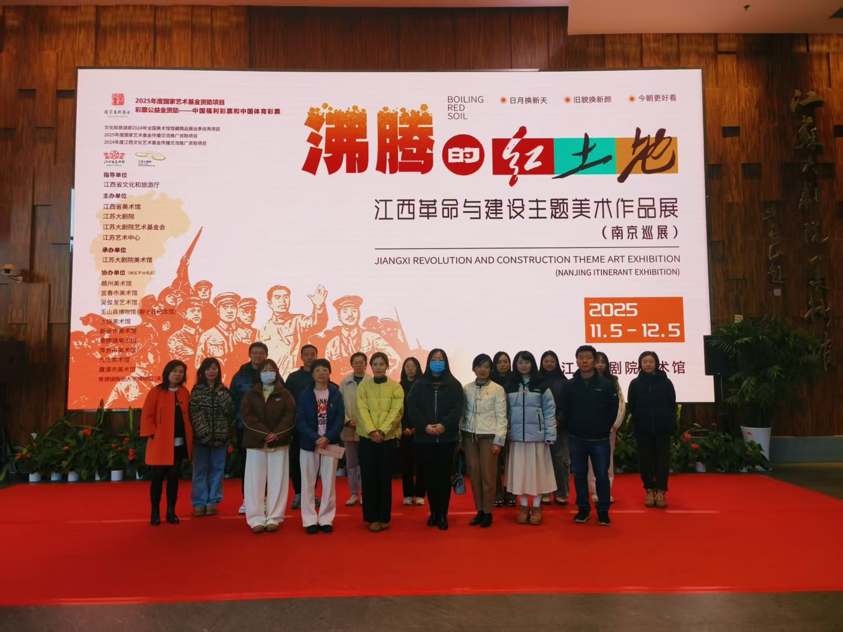 为深入推进党史学习教育常态化长效化,感悟红色精神,汲取奋进力量,2025年12月4日,金陵图书馆第四党支部组织全体党员赴江苏大剧院美术馆,开展主题党日观展活动,集体参观《沸腾的红土地——江西革命与建设主题美术作品展》。