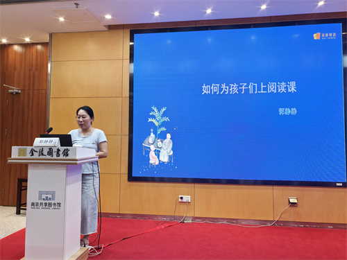 下午场活动由金陵图书馆少儿工作部副主任周军主持。亲近母语研究院研发中心主任郭静静围绕《如何为孩子们上阅读课》展开专业分享。她以《西游记》《草房子》等经典作品为例,系统解析了整本书阅读的教学逻辑,清晰界定了“阅读活动”与“阅读课程”的区别。通过展示如何设计“问题链”引导深度思考、运用“阅读策略卡”提升理解能力、组织“读者剧场”促进创意表达,为学员提供了一套从文本解读到课堂实施的完整解决方案,实现了从“教阅读”到“用阅读教”的理念升华。