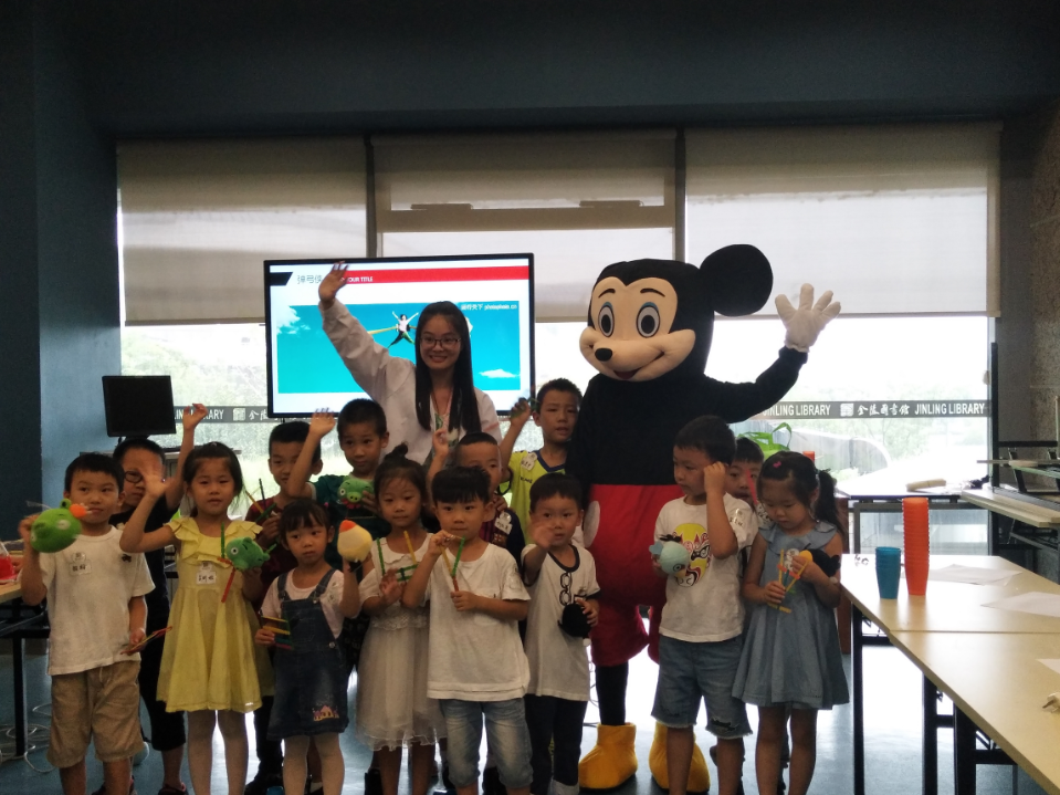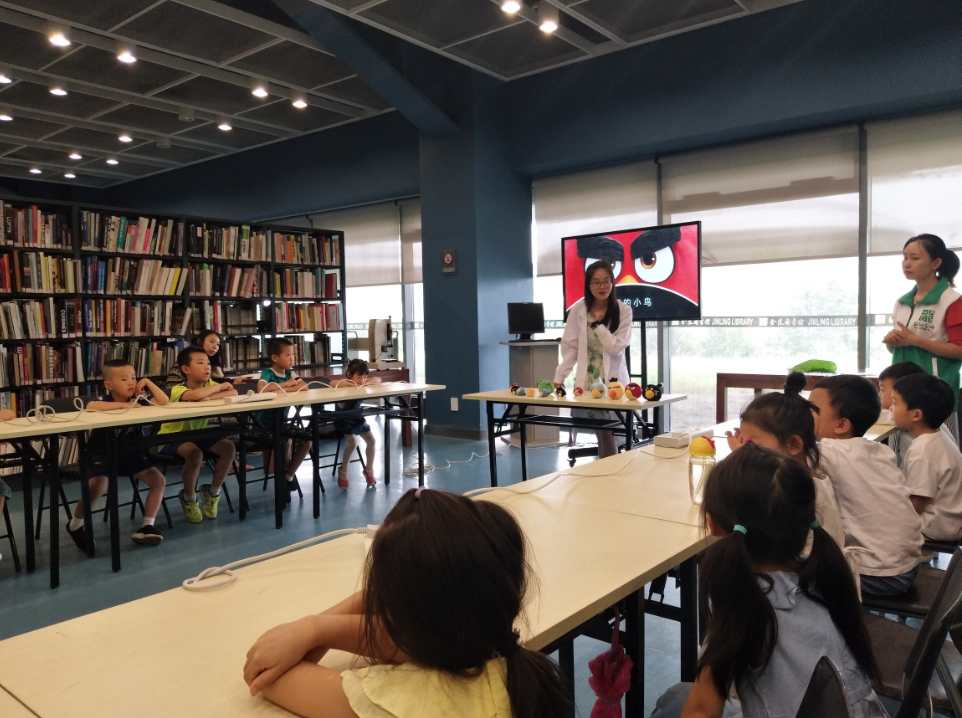 8月12日下午两点,由金图科普联盟和超创空间联合举办的“前进吧,愤怒的小鸟!”STEM系列活动在金陵图书馆二楼的艺术设计阅览室按时开展,可爱的米奇和亲切的老师带领着小朋友们展开了愉快的活动。